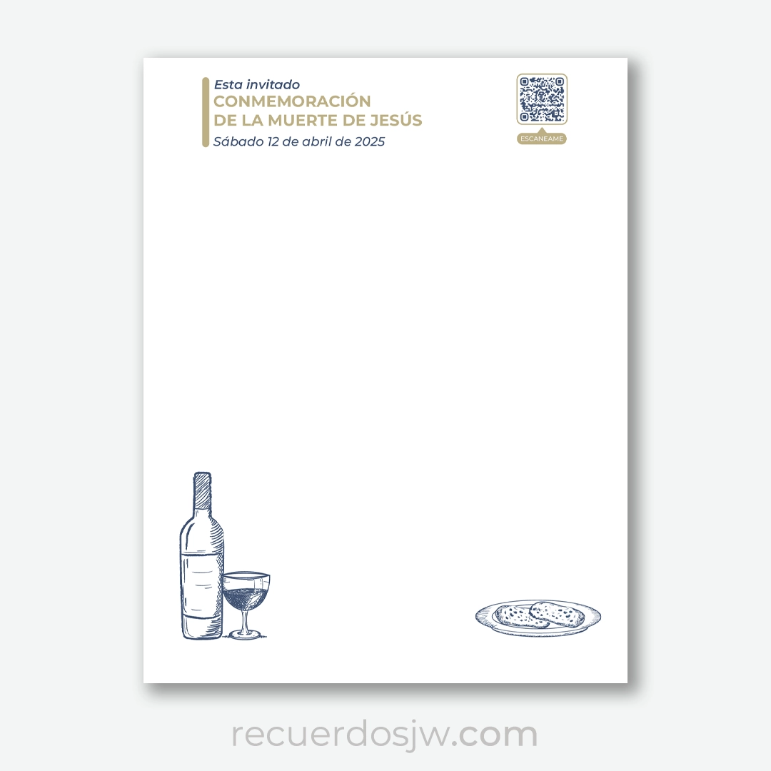 Hoja para hacer cartas en la campaña de la Commemoración 2025. Cotiene un cidgo QR que dirige a la invitación de la conmemoración 2025 en JW.ORG