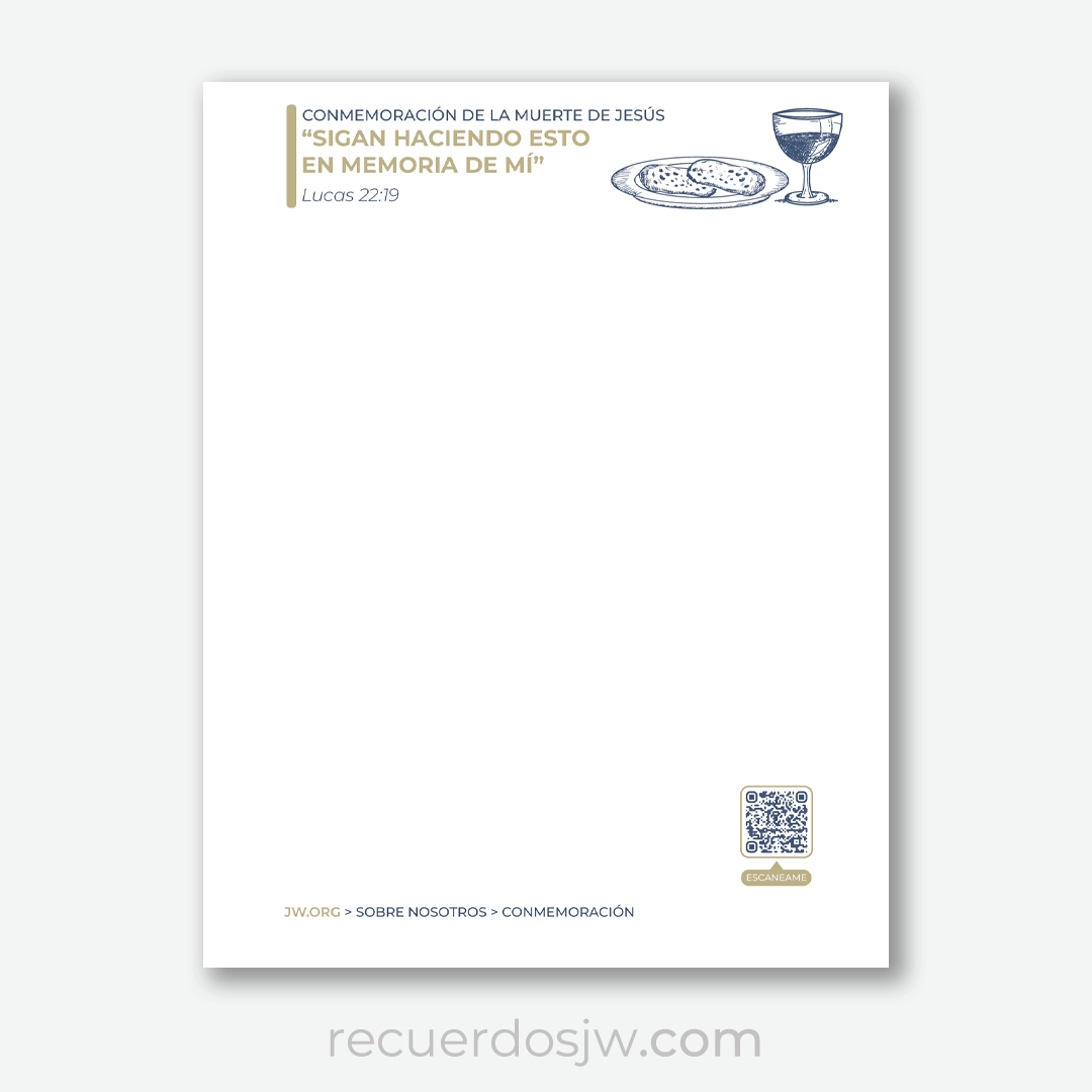 Hoja escribir tus cartas en la campaña de la Commemoración de la muert de Jesús 2025.
